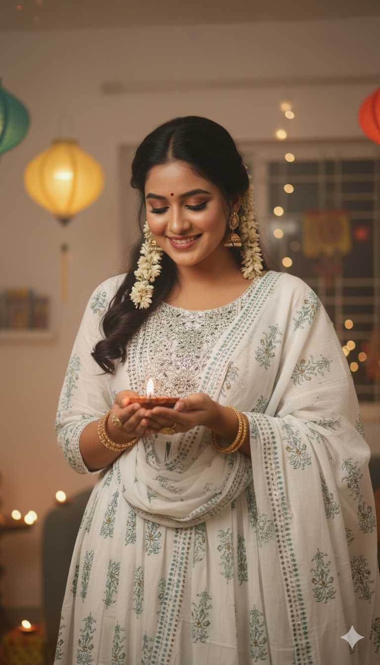 Minimal zari embroidery on the yoke, block prints of teal shade with inner cotton lining